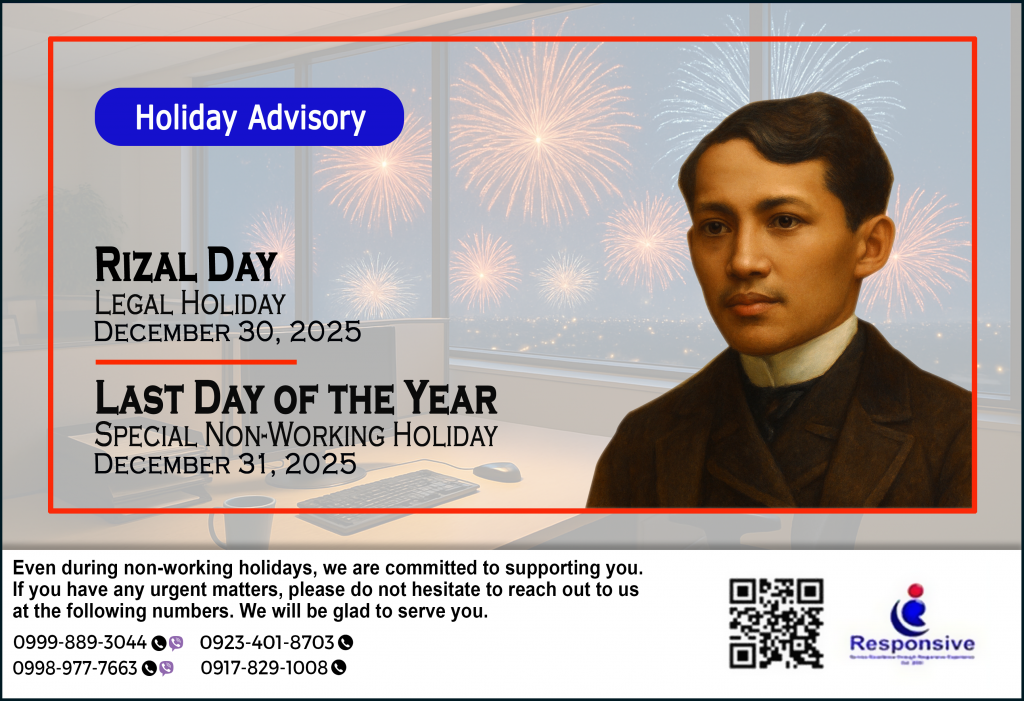 Rizal Day (December 30, 2025) & Special Non-Working Holiday (December 31, 2025)